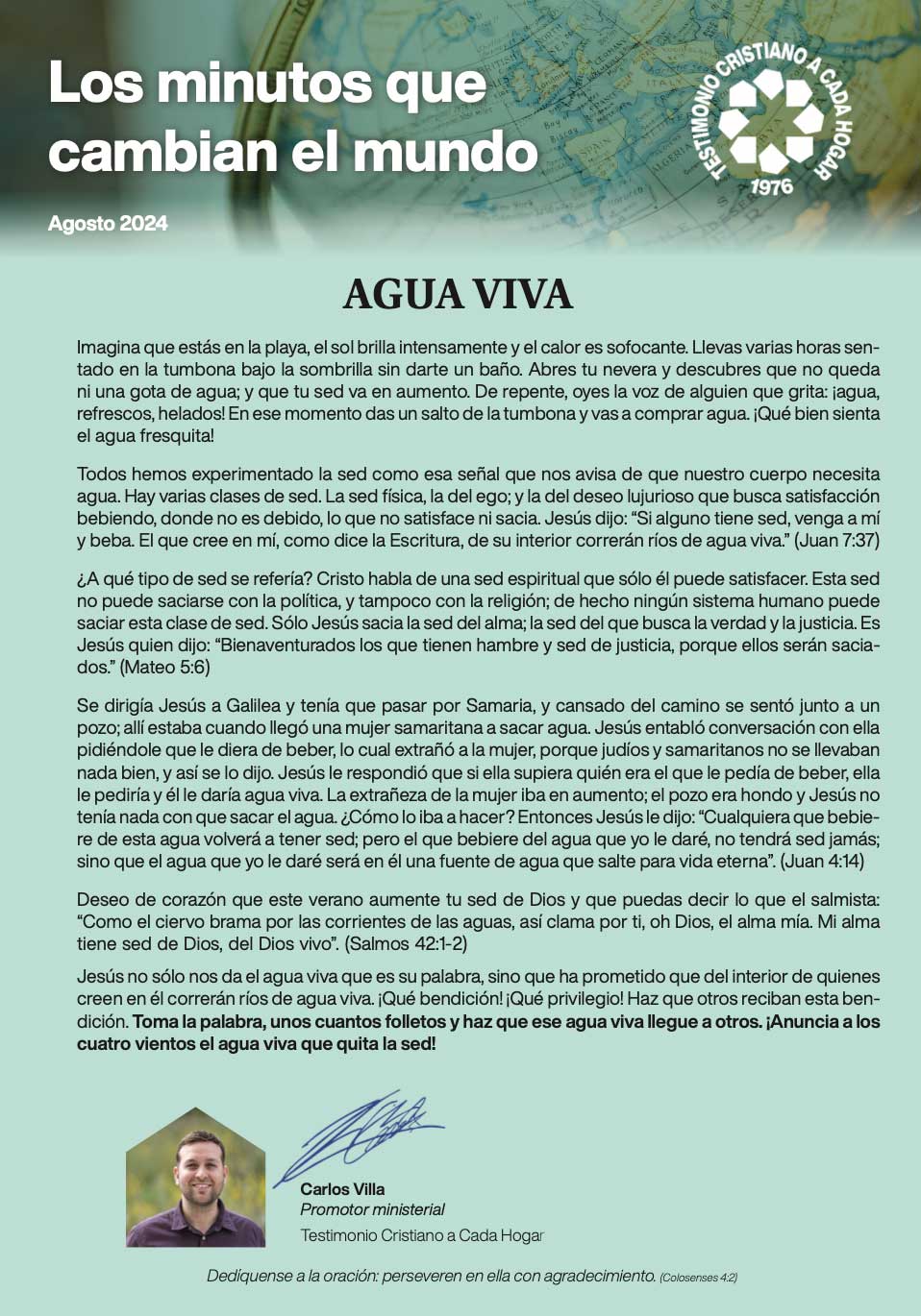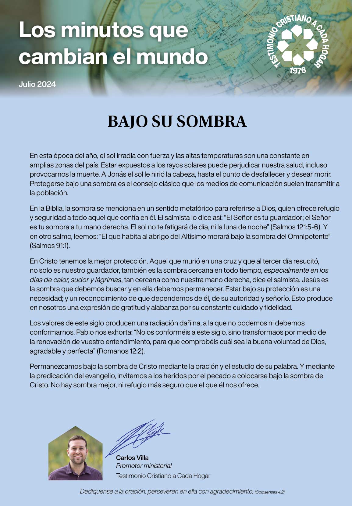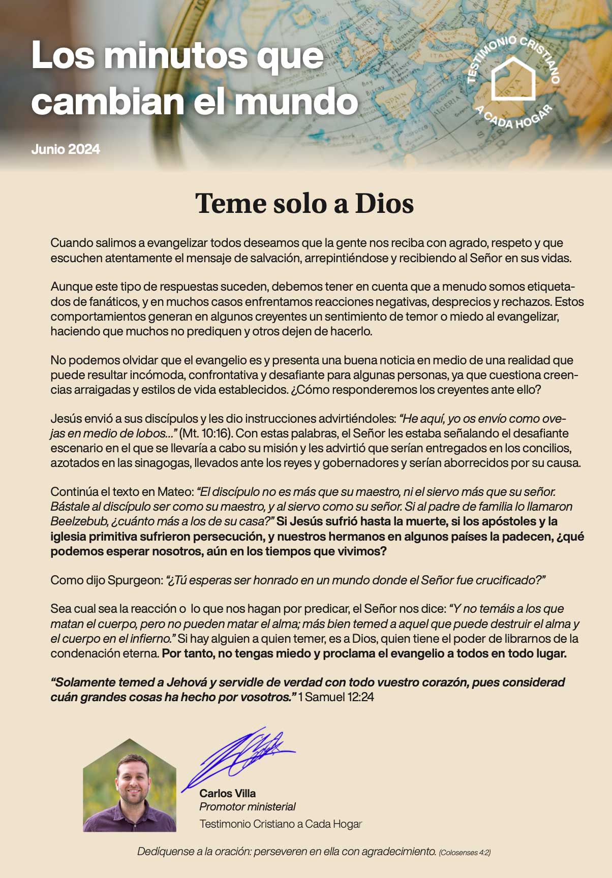 Pidamos a Dios sabiduría y valentía para actuar en consecuencia; como los hijos de Isacar, como las cinco vírgenes prudentes, como el mayordomo fiel y prudente al cual su señor le confió su casa. Dediquémonos a la misión con pasión y entrega e inspiremos a otros con nuestro ejemplo.